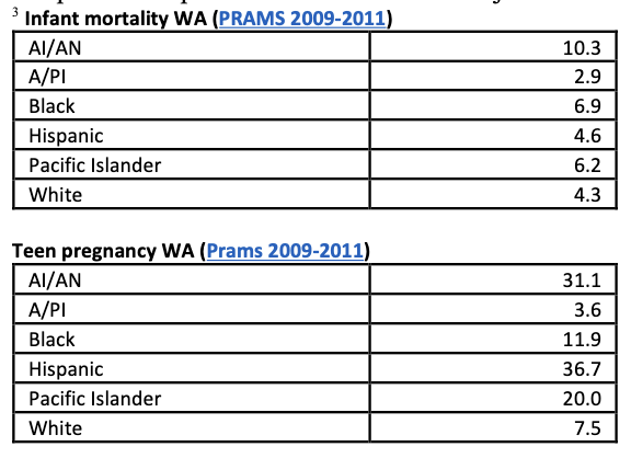 Systemic racism has placed people of color in higher risk conditions leading to unavoidable and unjust racial and ethnic disparities in reproductive or women’s health in Washington state including: